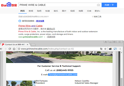 通过官网,我们找到了一个邮箱线索 Tarat@primewirecable.com