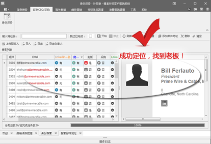 3、探测CEO/采购功能,可一键分析所有邮箱的职位信息;