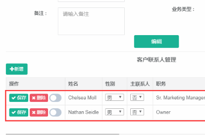 2、可以在一个客户下面存储N个负责人进行跟踪;